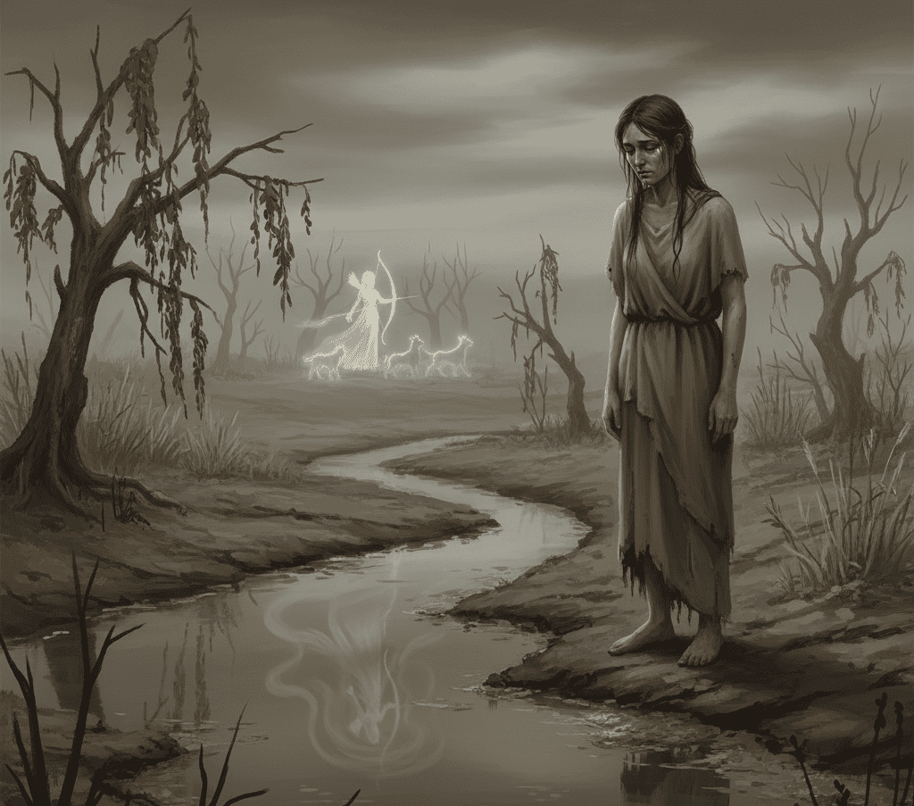 As punishment, Artemis turned her stream to mud and her reflection to mist. The moral spread across Greece: pride among the divine never flowed for long.