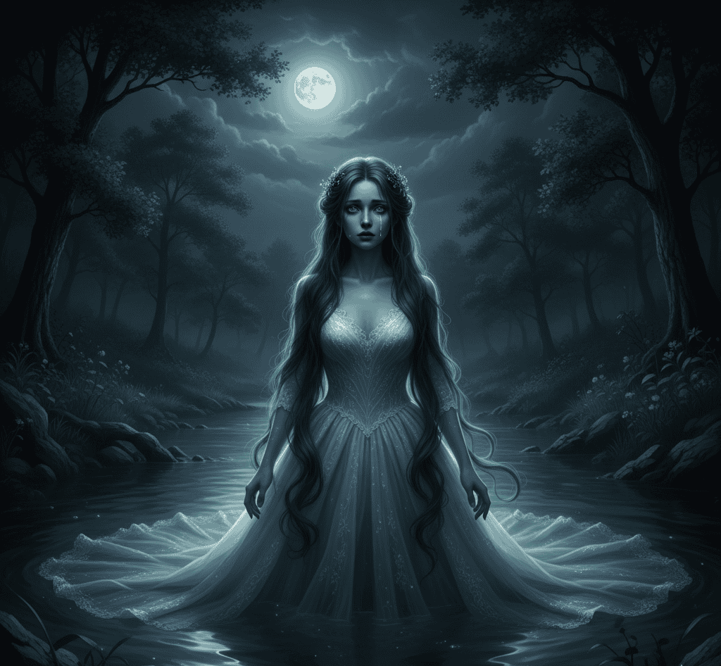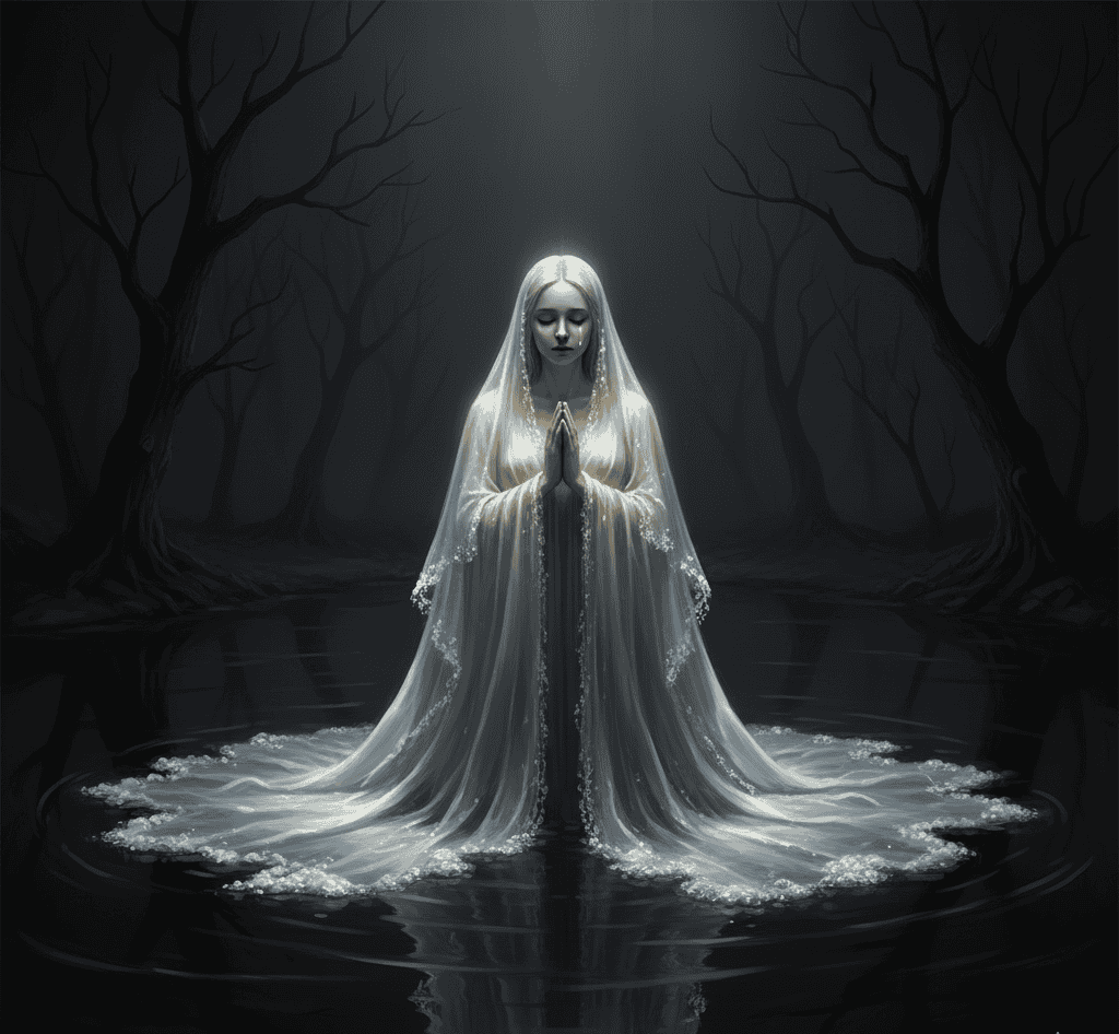 She is said to appear on moonlit nights, wearing a crown of reeds, her gown made of mist. She does not seek revenge but instead lures unfaithful men to confess their lies.