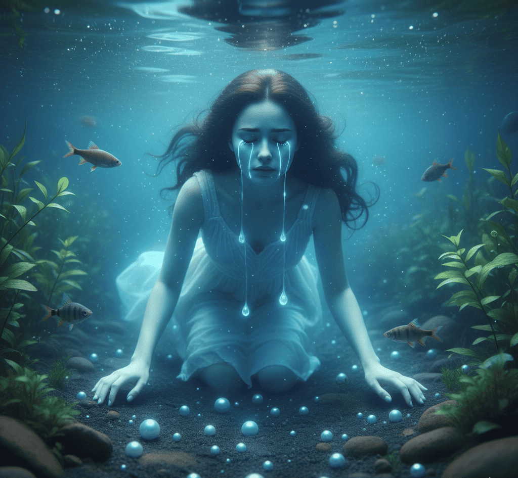 When her spirit learns the truth, she weeps endlessly beneath the surface, her tears becoming pearls in the mud. People say her love was so pure it made even death tender.