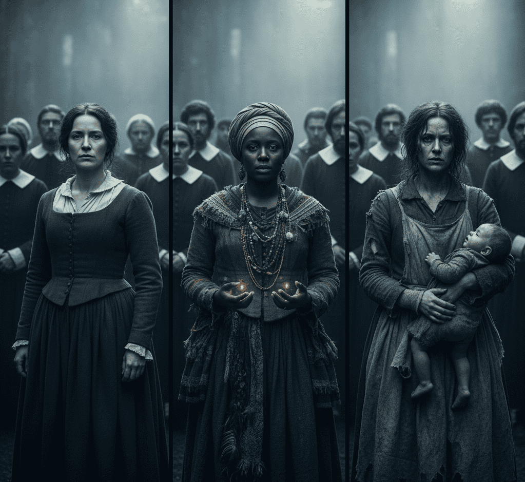 The first three women accused of witchcraft were Tituba, an enslaved woman of Caribbean or possibly Indigenous origin, Sarah Good, a destitute beggar, and Sarah Osborne, a woman who defied Puritan norms by rarely attending church.