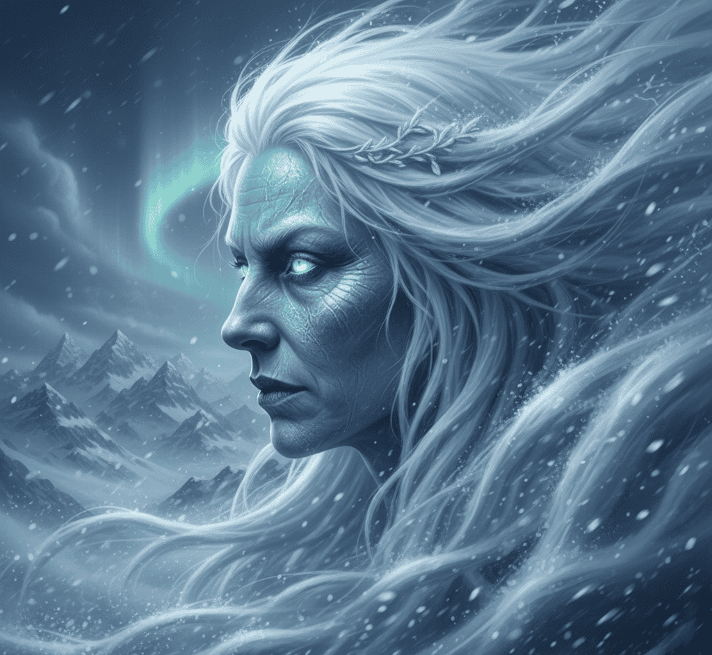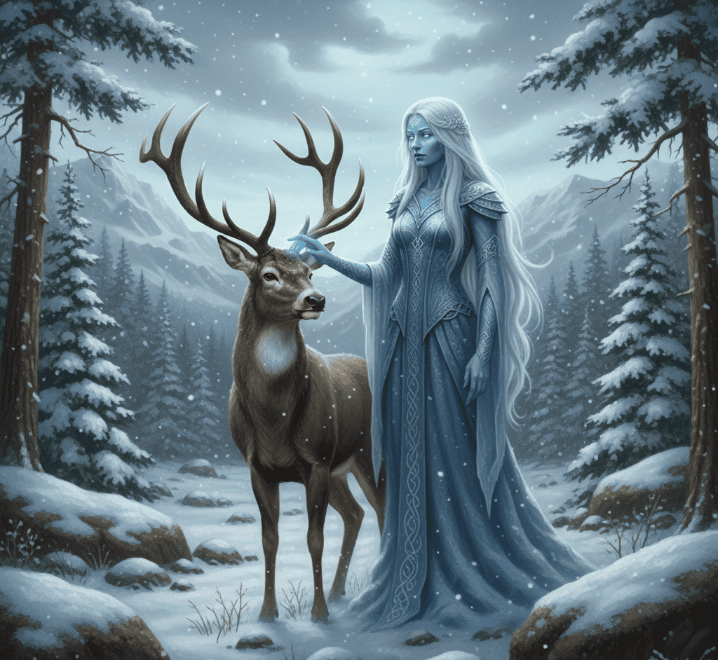 Imagine her lifting her staff with calm focus. She is shaping winter once again, just as she has done for ages.