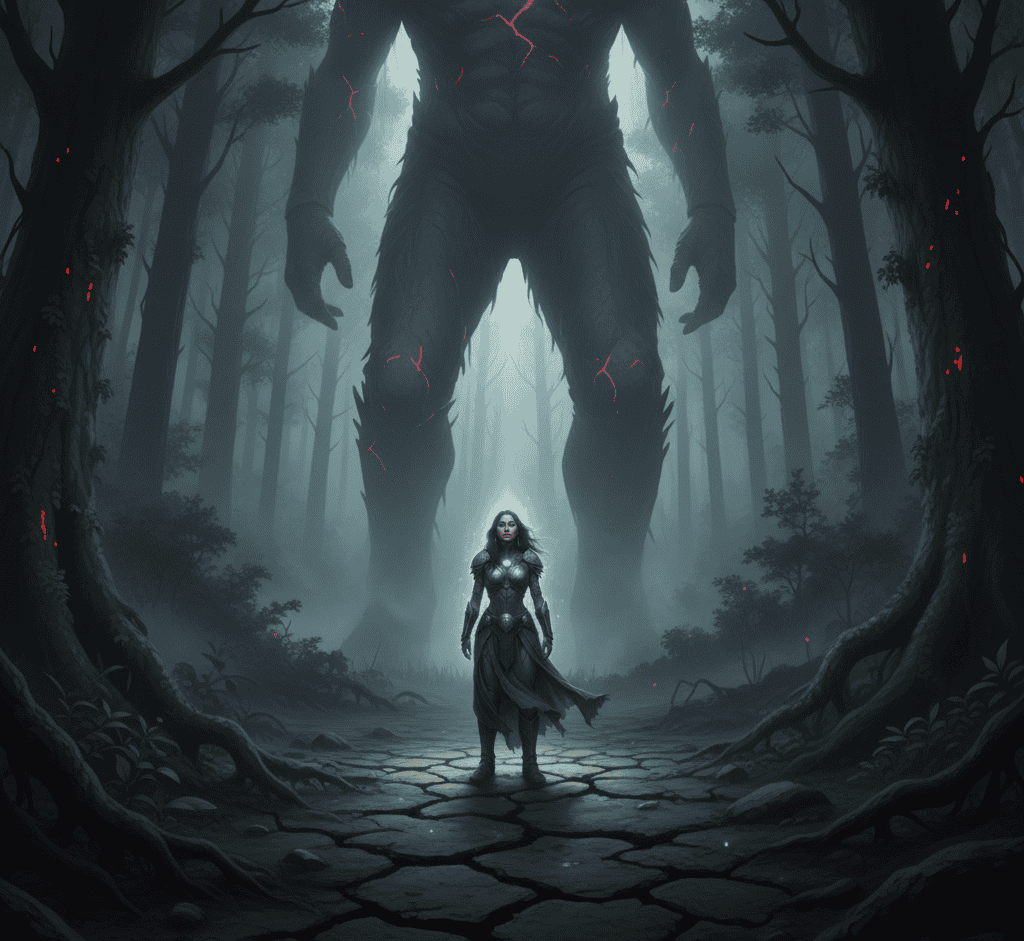 Where she walked, the ground trembled, and where she looked, storms paused. The giants heard her and met her with the only thing they knew, force.