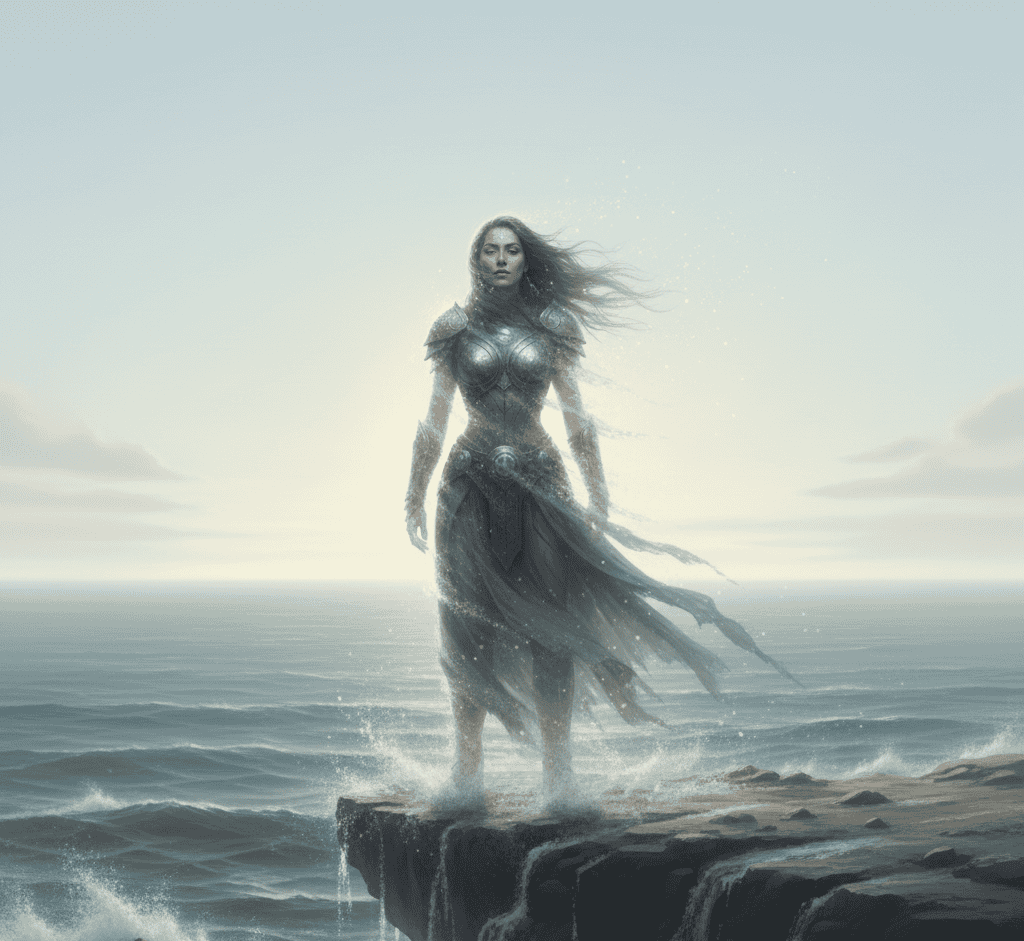 She did not arrive in silence. The sky seemed to bend toward her, and the sea answered with a steady roar.