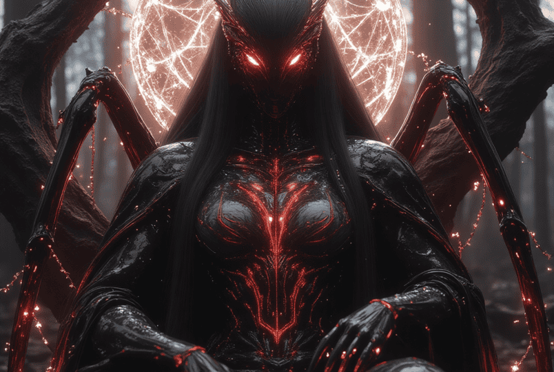In Japanese folklore, Jorogumo is a spider yokai that weaves deadly webs to trap victims.