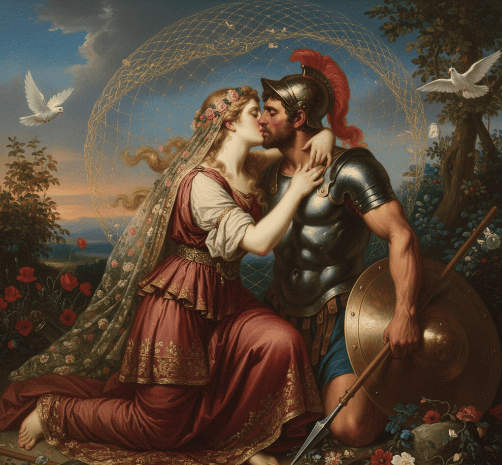 The two would sneak away, and their secret encounters became legendary. One tale tells how Hephaestus trapped them in a golden net to shame them in front of the other gods.