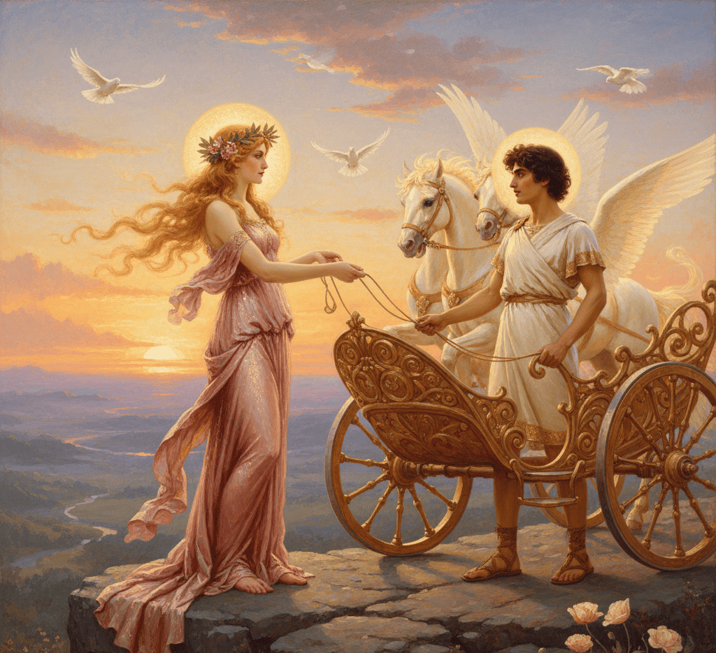 Though Phaethon met a fiery end when he tried to drive the chariot of Helios, the memory of Aphrodite’s love lingered. Their story reminds us that not all love is meant to last. Some flames burn bright and then fade, leaving warmth in memory if not in life.