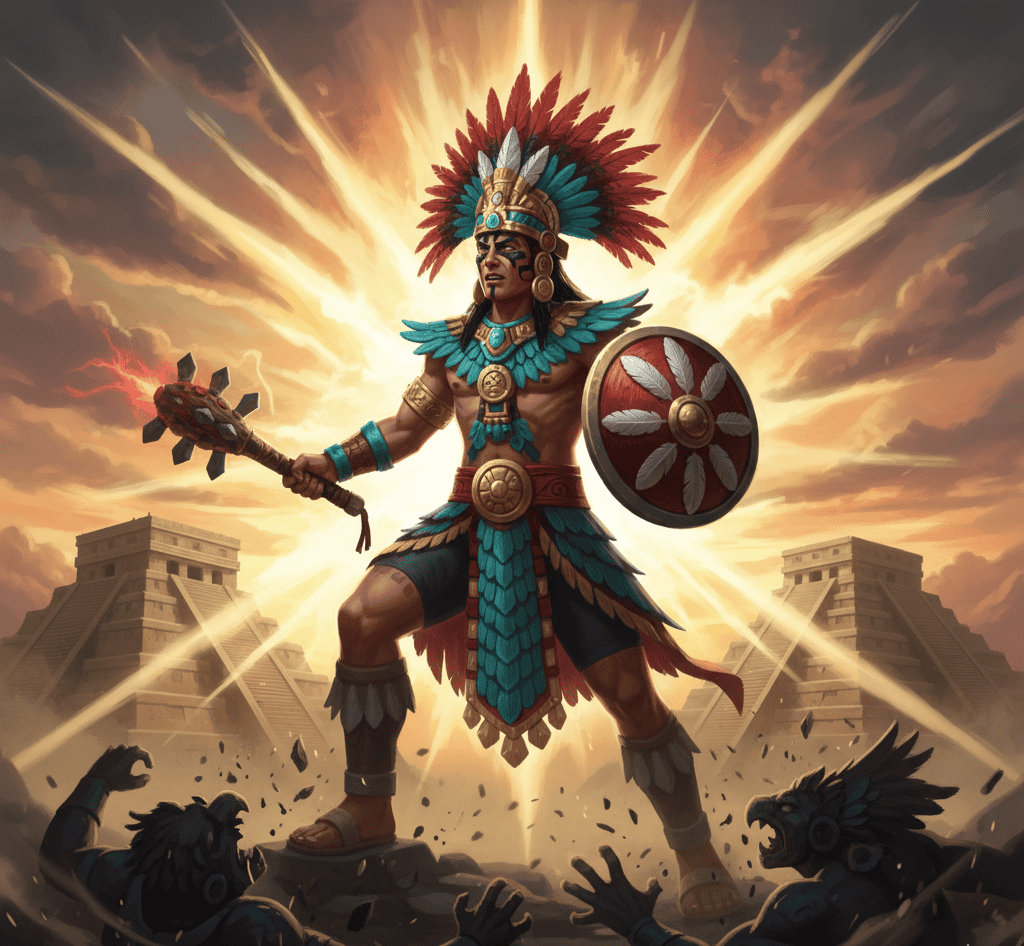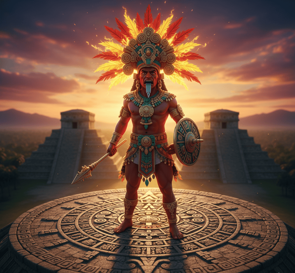 Tonatiuh was imagined as a fierce warrior, blazing in the sky and driving the cosmic cycle.