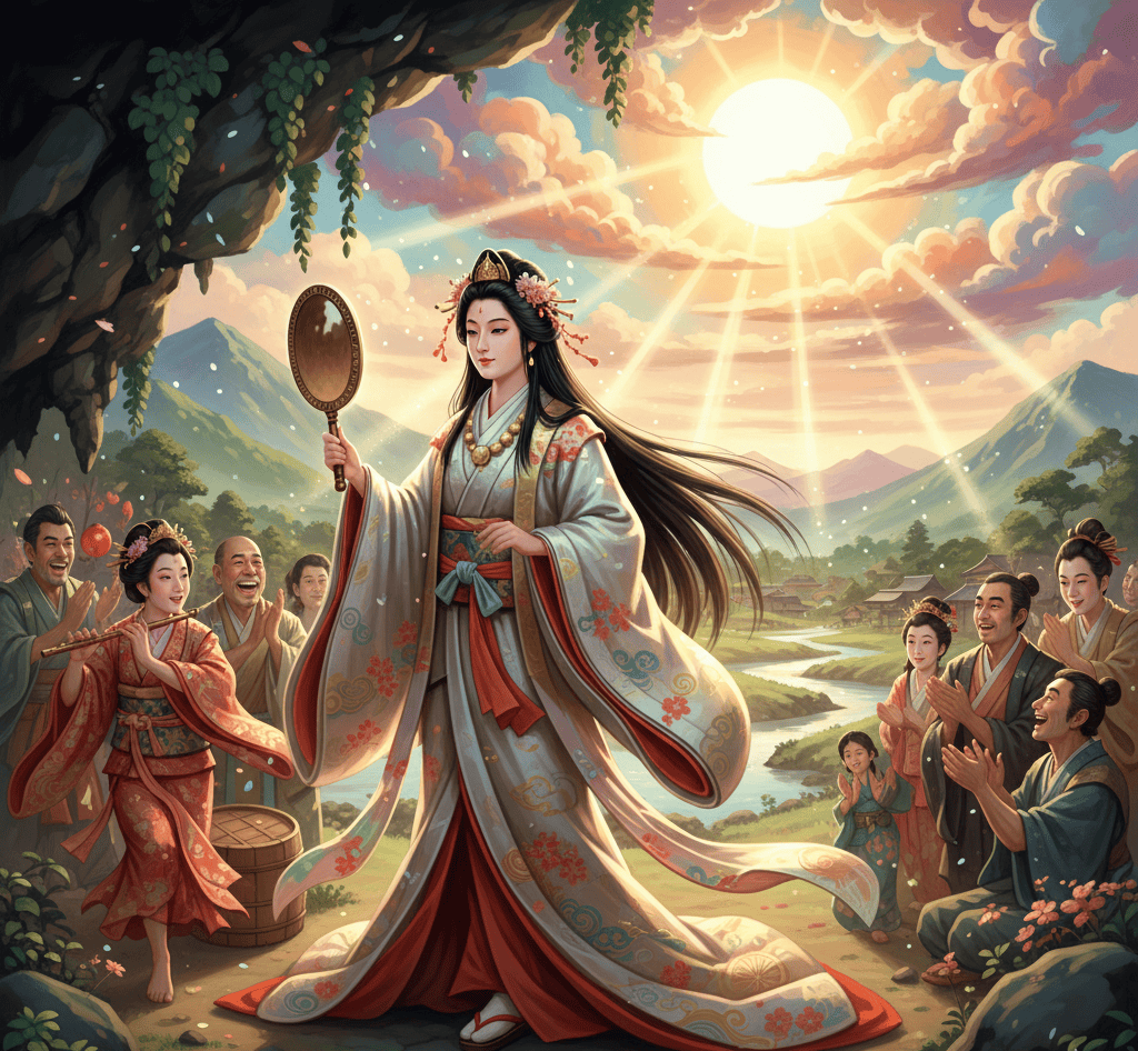 The most famous tale tells how she once hid in a cave after a quarrel, plunging the world into darkness.