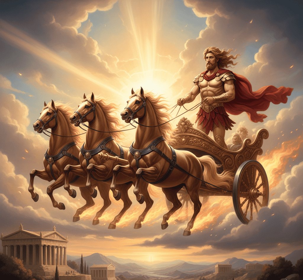 From sunrise to sunset, he never failed to guide his glowing steeds, ensuring the world received its daily light.