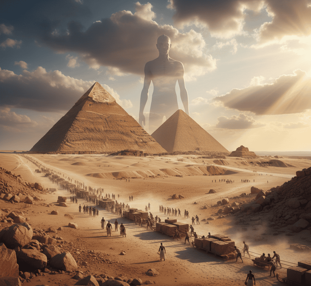They argue that the pyramids, due to their massive scale, match the kind of work such beings could accomplish.