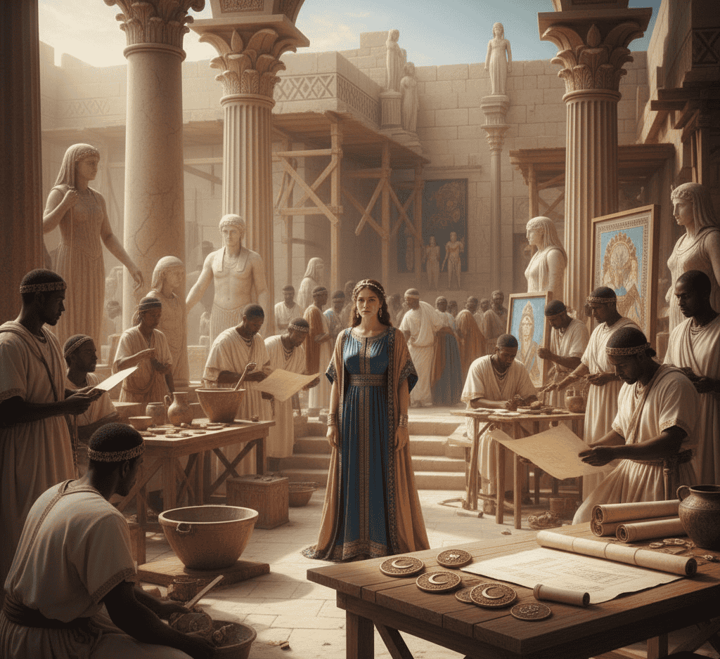 Selene’s understanding of diplomacy and cultural presentation helped strengthen relations with Rome while maintaining local stability.