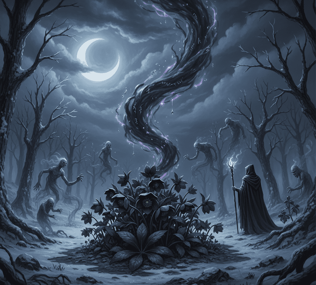 For Hecate, black hellebore represented deep mystery and hidden knowledge. The plant grew in dark, wintry conditions and carried an energy of resilience in bleak places.