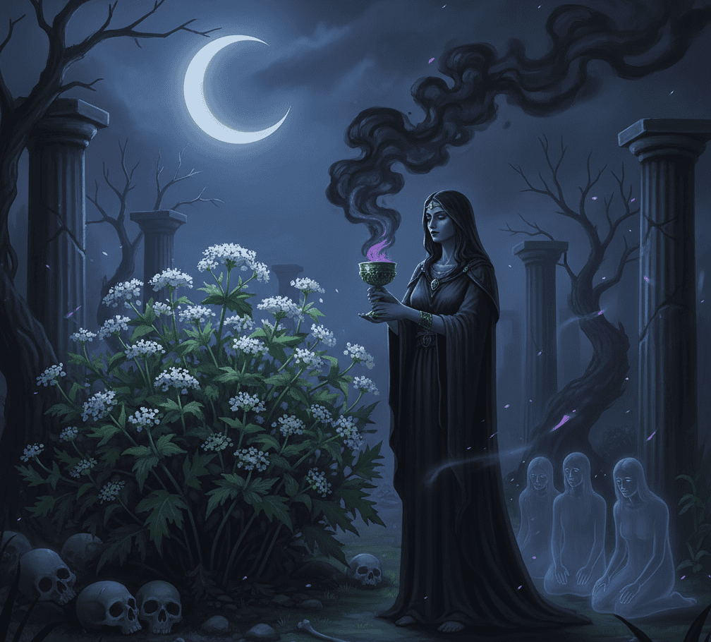 Hecate’s association with hemlock had to do with its ability to blur the line between the living and the dead. In rituals, it symbolized sacrifice and transformation.