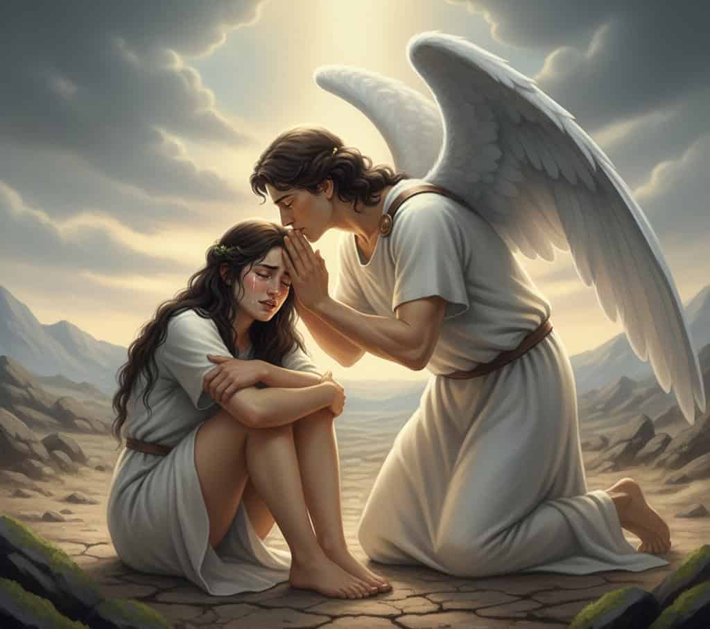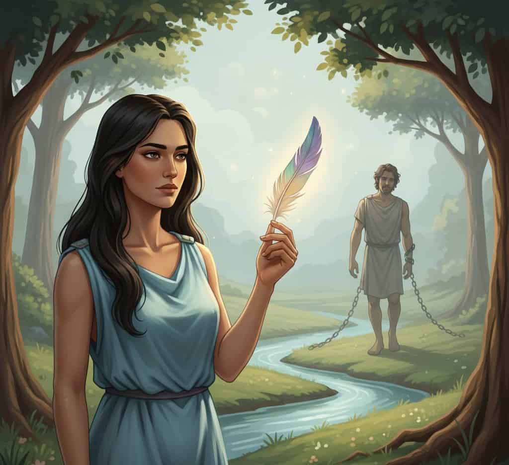 The god appeared and placed one feather from his wing in her hand. She felt her pain lessen, replaced by clarity.