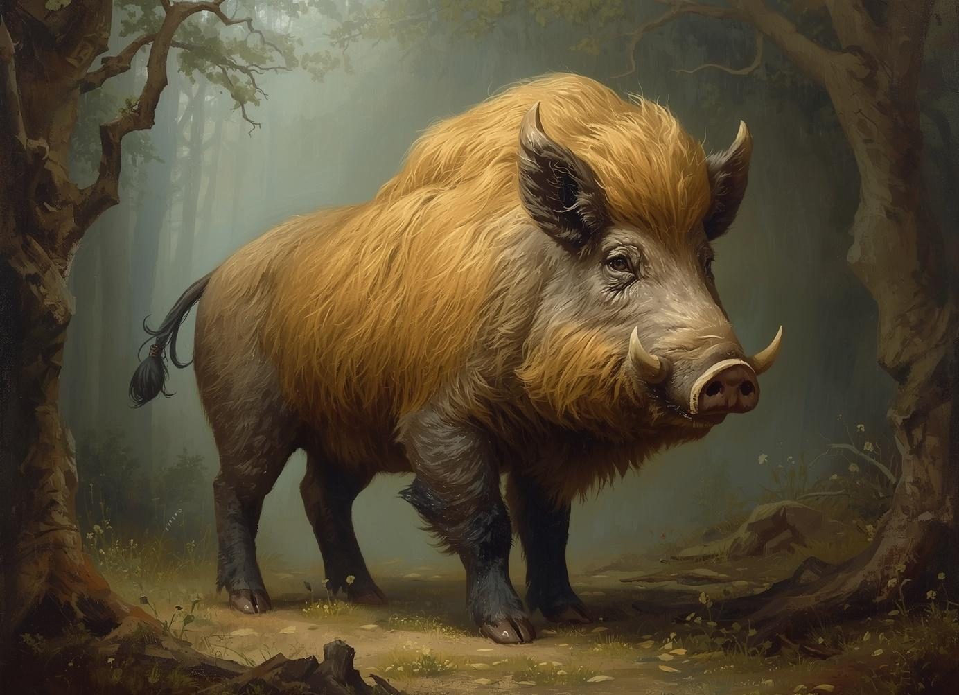 Because its golden fur shines like sunlight, it can guide travelers even in the darkest night. Despite its noble purpose, the idea of a glowing, magical boar is still quite unusual.