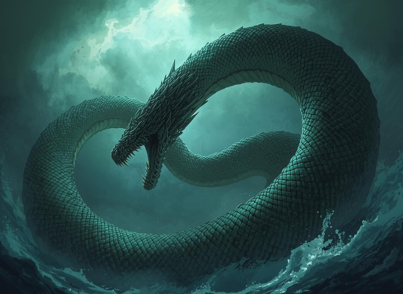 Eventually, it became so long that it could bite its own tail. Because of its size, it controls the oceans and causes powerful storms.
