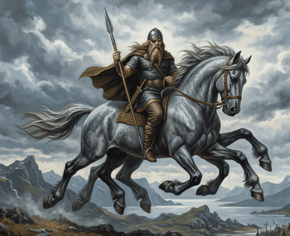 Sleipnir belongs to Odin, the king of the Norse gods, and is considered the greatest horse in all the nine worlds.