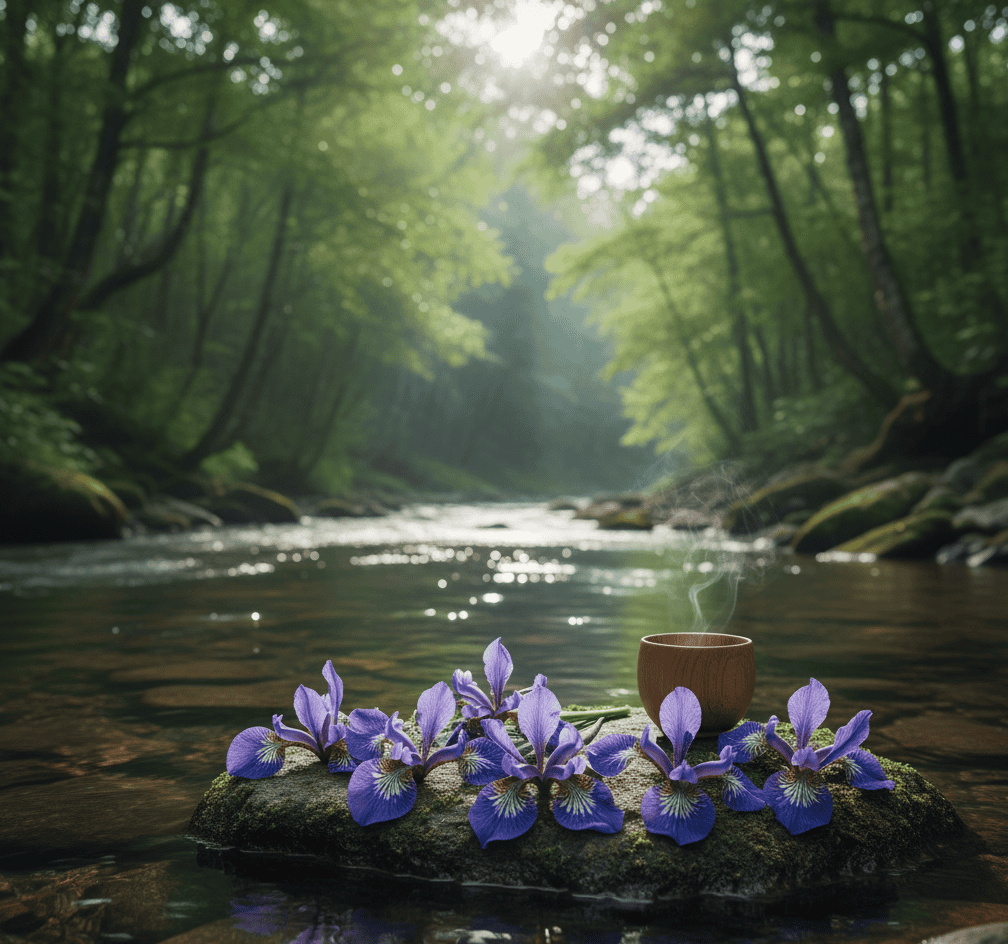 The bright blue-purple flowers of the Siberian iris were admired not only for their beauty but also for their sacred meaning.