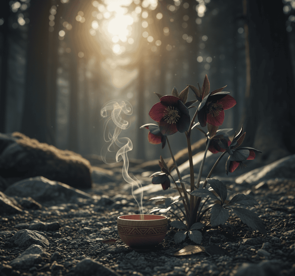 Hellebore was a plant connected to mystery and awe. The Ainu saw it as powerful because of its ability to grow in harsh conditions, making it a fitting offering to strong kamuy.